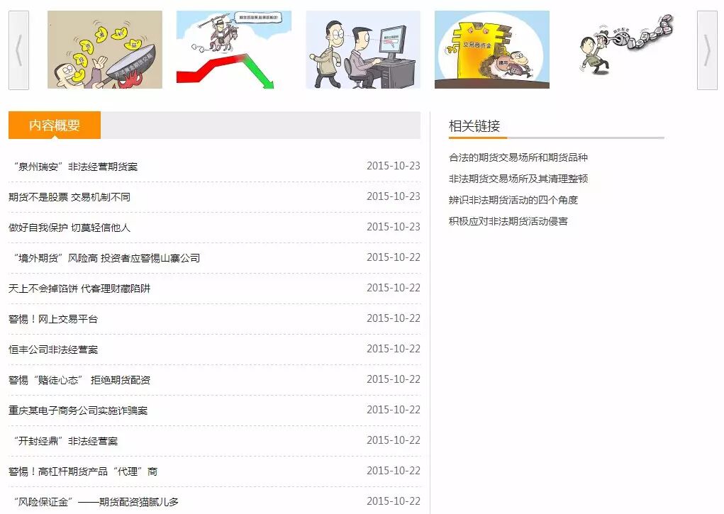 “期貨投教網(wǎng)”通過(guò)整合行業(yè)監(jiān)管單位、交易所和經(jīng)營(yíng)機(jī)構(gòu)的投資者教育和保護(hù)資源,為廣大投資者和從業(yè)人員提供豐富的投教知識(shí)。網(wǎng)站引入了雜志化編輯理念,增加了自主創(chuàng)建的內(nèi)容和更新頻率、推送功能和互動(dòng)功能,網(wǎng)站設(shè)置“投教資訊”、“維權(quán)保護(hù)”、“期貨學(xué)苑”、“投教展播”等若干頻道和欄目,分別應(yīng)用于投資者日常資訊、投資者保護(hù)與維權(quán)、投資者在線教育及學(xué)習(xí)、行業(yè)投教資源及產(chǎn)品展示等不同場(chǎng)景,以適應(yīng)快速增長(zhǎng)的投資者網(wǎng)上教育需求。同時(shí),該網(wǎng)站與中期協(xié)官方微信“中期協(xié)發(fā)布”進(jìn)行了緊密聯(lián)結(jié)和互動(dòng),投資者可通過(guò)微信平臺(tái)登陸網(wǎng)站查閱信息,讓投資者在移動(dòng)終端更便捷地獲取投教資訊。